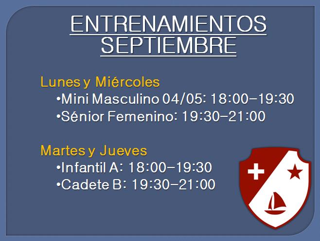 Horarios entrenamientos 2023/24